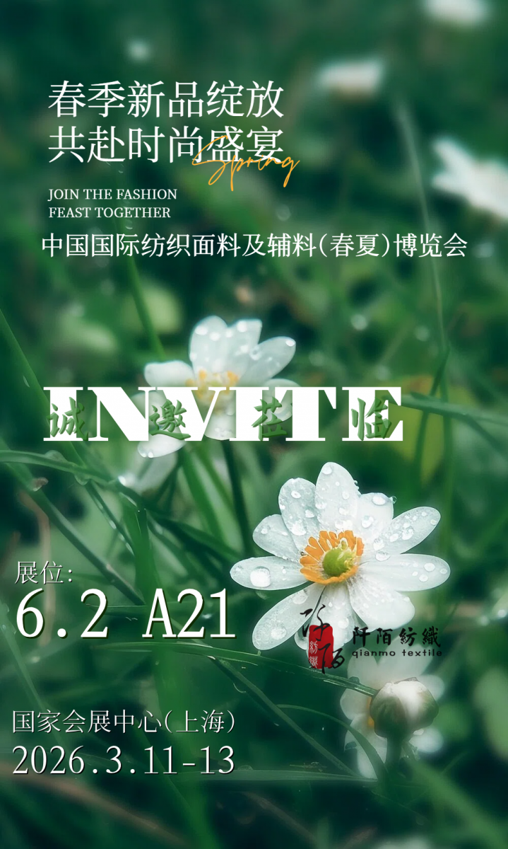 春意渐浓,万象更新。阡陌纺织诚挚邀请您莅临中国国际纺织面料及辅料(春夏)博览会,共赴这场春日时尚盛宴。